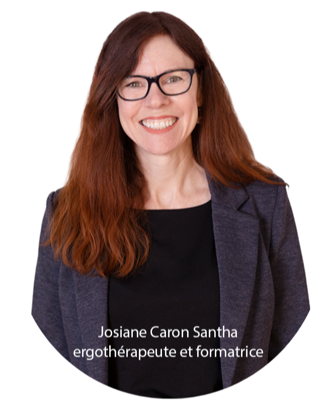 Josiane Caron Santha, ergothérapeute, formatrice et auteure, suivie par 30,000+ personnes, cumulant plus de 20 ans d'expérience en pédiatrie (réseau de la santé publique, clinique privée, milieu scolaire, intervention précoce à domicile). Maman de deux adolescents.