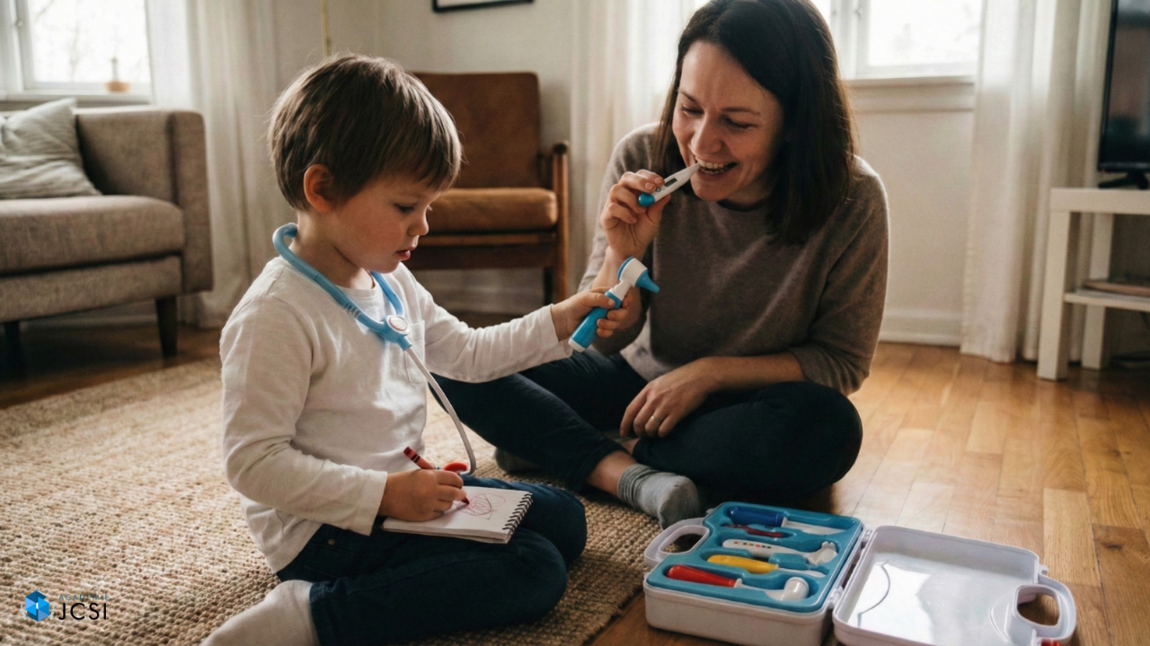 Durant la petite enfance, l’enfant s’amuse à « faire semblant d’écrire » dans ses jeux. Il prend une commande au restaurant ou rédige une prescription médicale. L’écriture fait partie du jeu symbolique, sans attente de résultat.