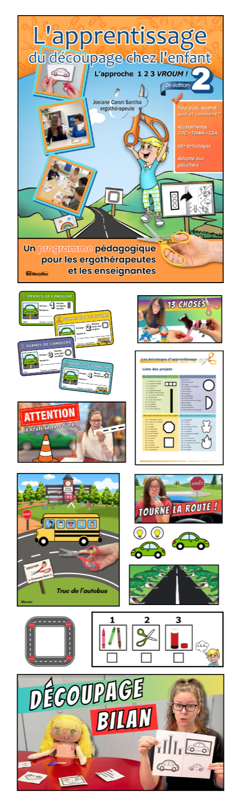 Avoir cette ressource éducative, c’est un peu comme avoir un.e ergothérapeute avec vous pour vous aider à comprendre et à trouver les bonnes solutions aux défis rencontrés avec l'apprentissage du découpage.